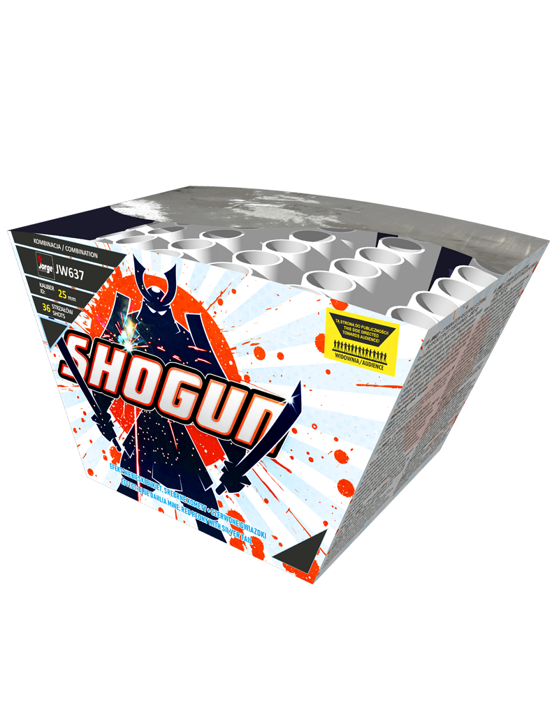 Le Shogun, faites exploser ce compact dans vos soirées les plus sombres, il sera vous éclairez par ses volées de trois bombettes, avec au milieu un magnifique tracé argenté qui explosera en étoiles rouges, puis sur les cotés un peu plus bas des étoiles d'un bleu profond. Une magie féerique vous attend.