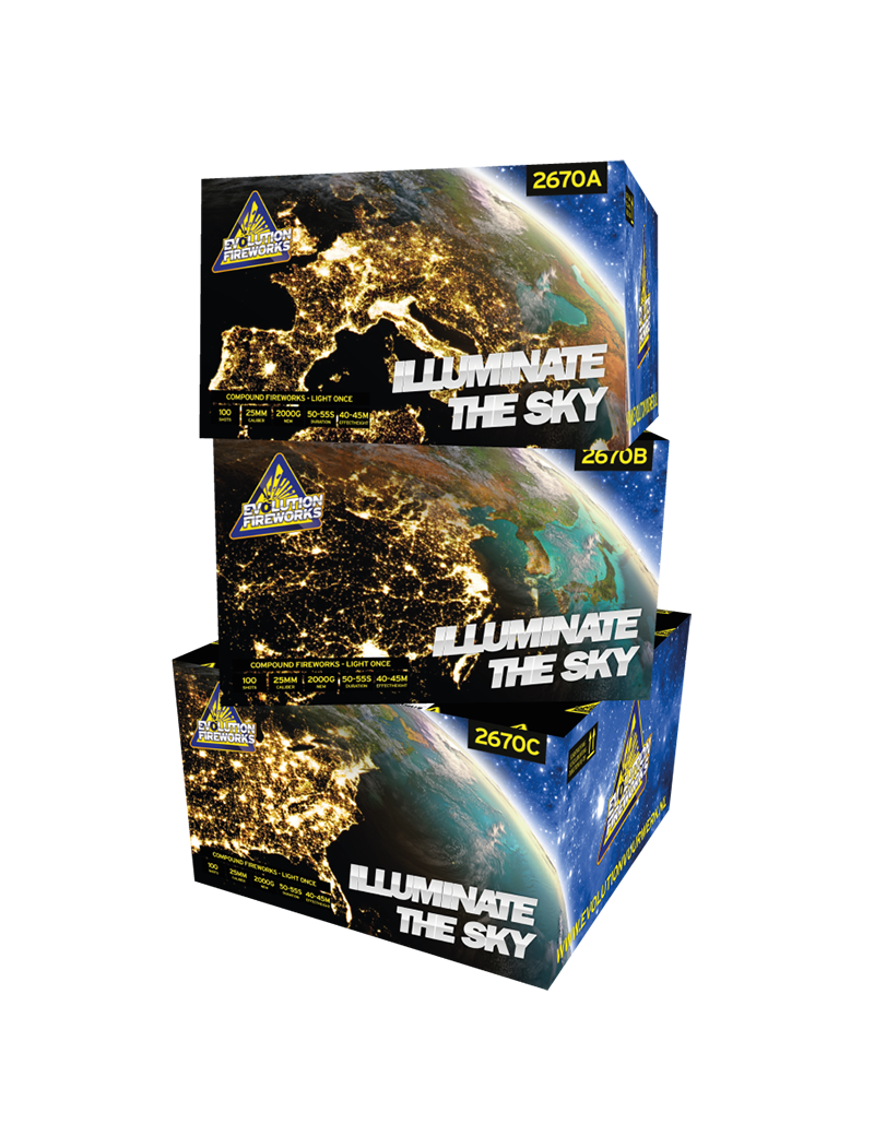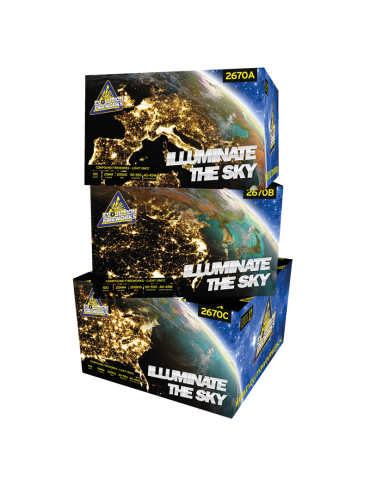 Le ILLUMINATE THE SKY pourra illuminer votre ciel avec ses 3 compacts composant un feu d'artifice à lui seul.