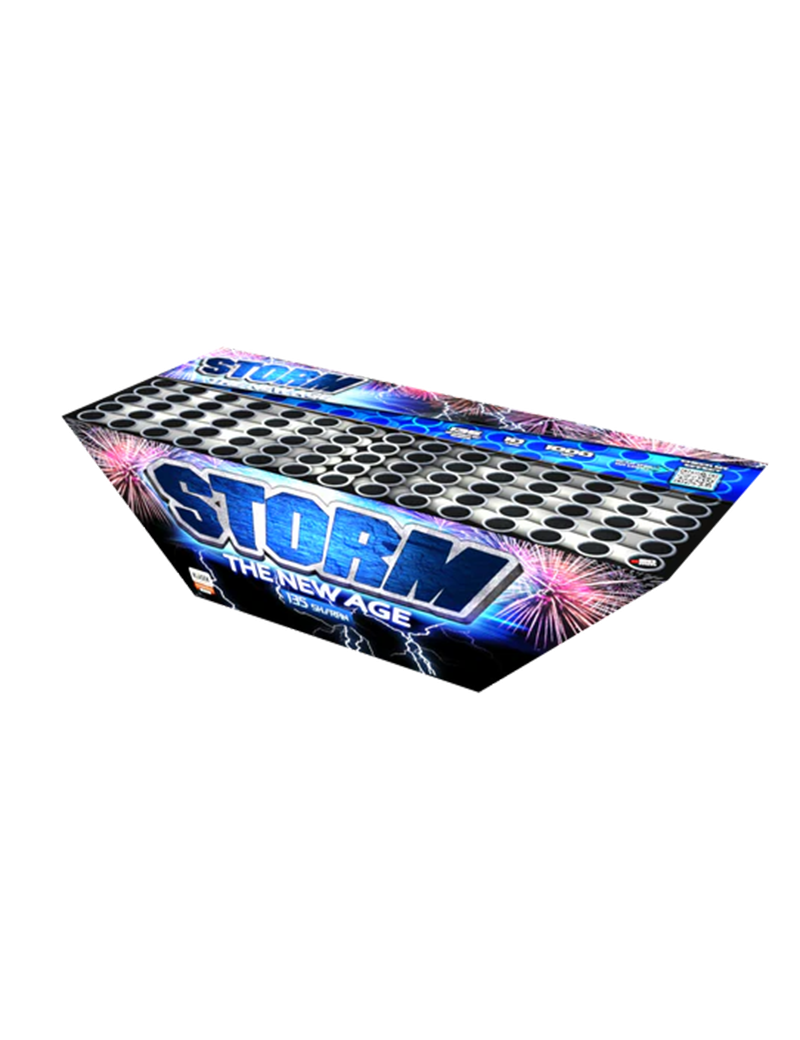 Préparez-vous à un spectacle pyrotechnique éblouissant avec le STORM NEW AGE CS1352X7 de Klasek ! Feu d'artifice compact à effet sifflant, strobe rouge et blanc, comète bleue.