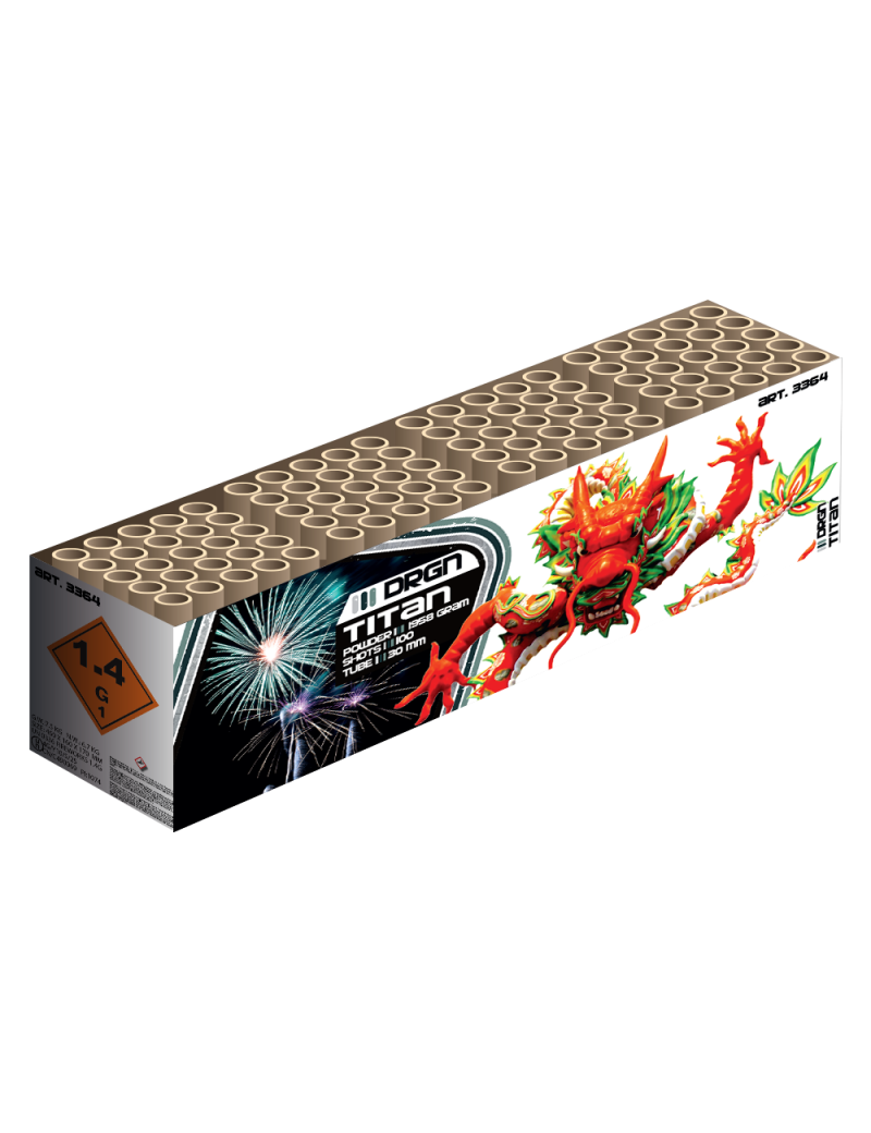 À une vitesse fulgurante, le Drgn Titan projette ses effets ultra-colorés, inspirés des spectacles professionnels, dans le ciel. Un spectacle garanti, à couper le souffle jusqu'au bout.
