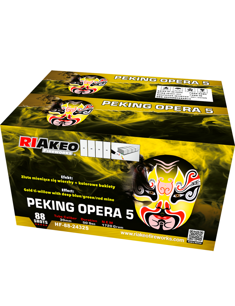 Le PEKING OPERA 5 est une batterie d'artifice de haute qualité qui concentre un maximum d'impact visuel et sonore en moins d'une minute. C'est un produit idéal pour donner le ton de votre soirée ou pour marquer un moment clé.