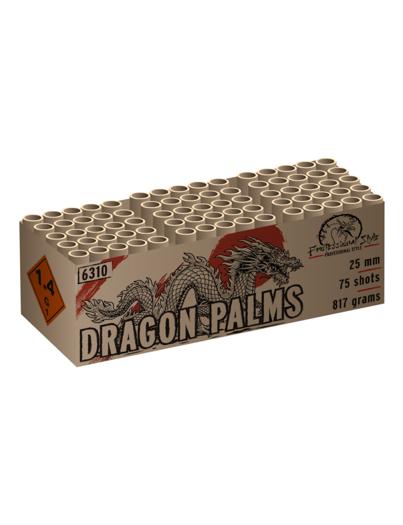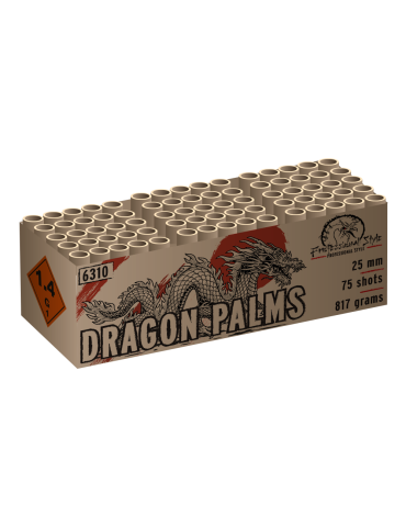 20Dragon Palms propose 75 palmiers pailletés d'une grâce exceptionnelle, ornés de perles colorées rouges, vertes et bleues. L'artifice qui transforme le ciel en un jardin exotique et explosif !