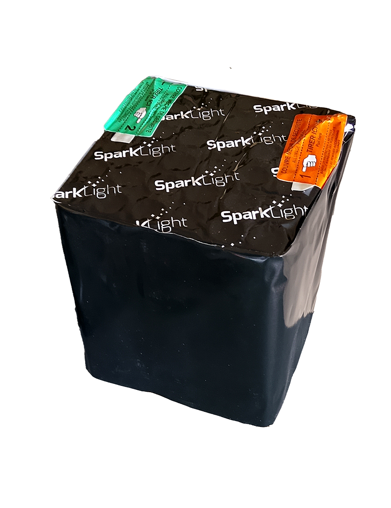Compact 19 coups tourbillon argent, dahlia rouge pistil strobe blanc